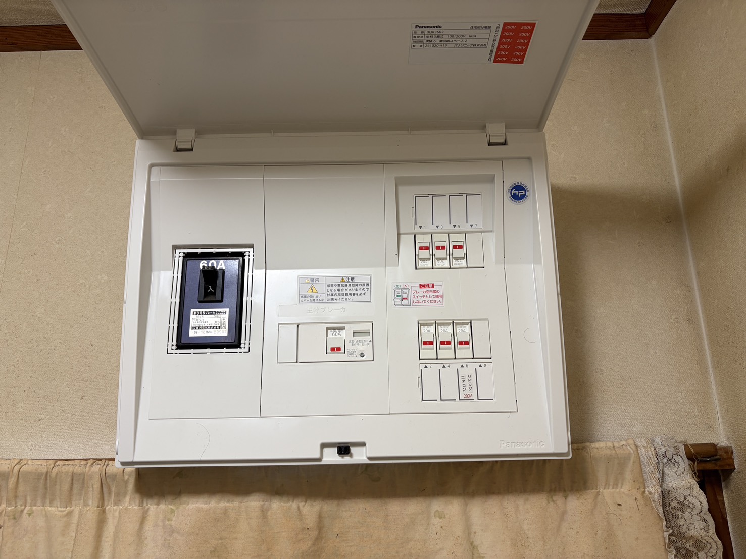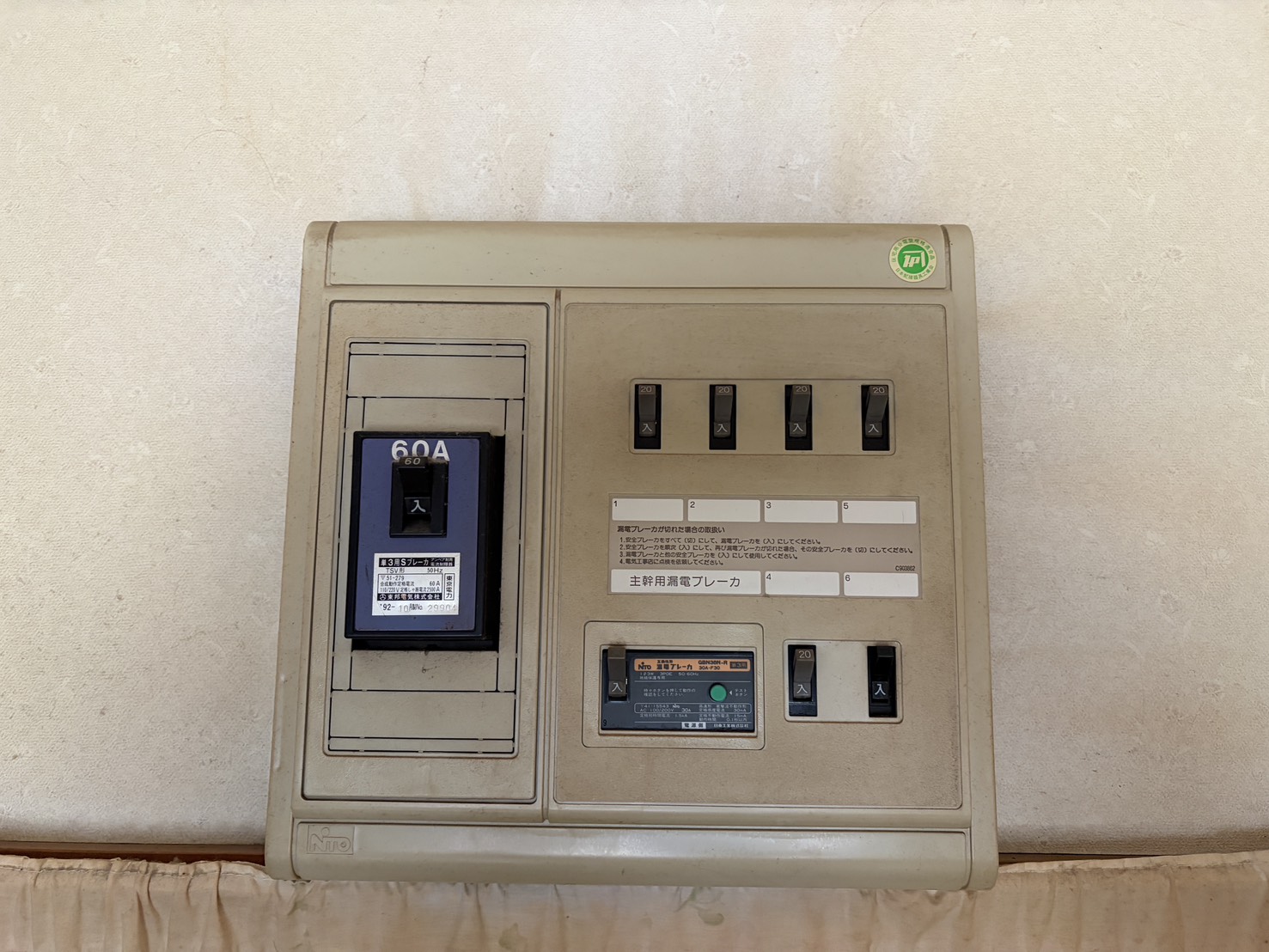 エアコンを200Vにするため、分電盤を確認すると古くなっていました。