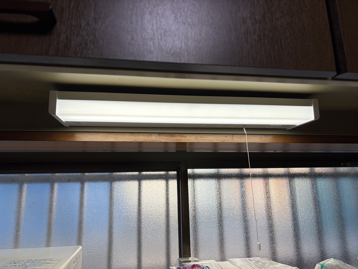 今回、エアコンやテレビをご依頼いただいたタイミングで、キッチンと流し元の蛍光灯をLED照明化することになりました。